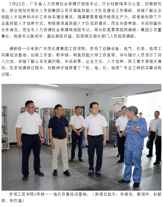 廣東省人社廳到集團公司調(diào)研高技能人才隊伍建設(shè)工作