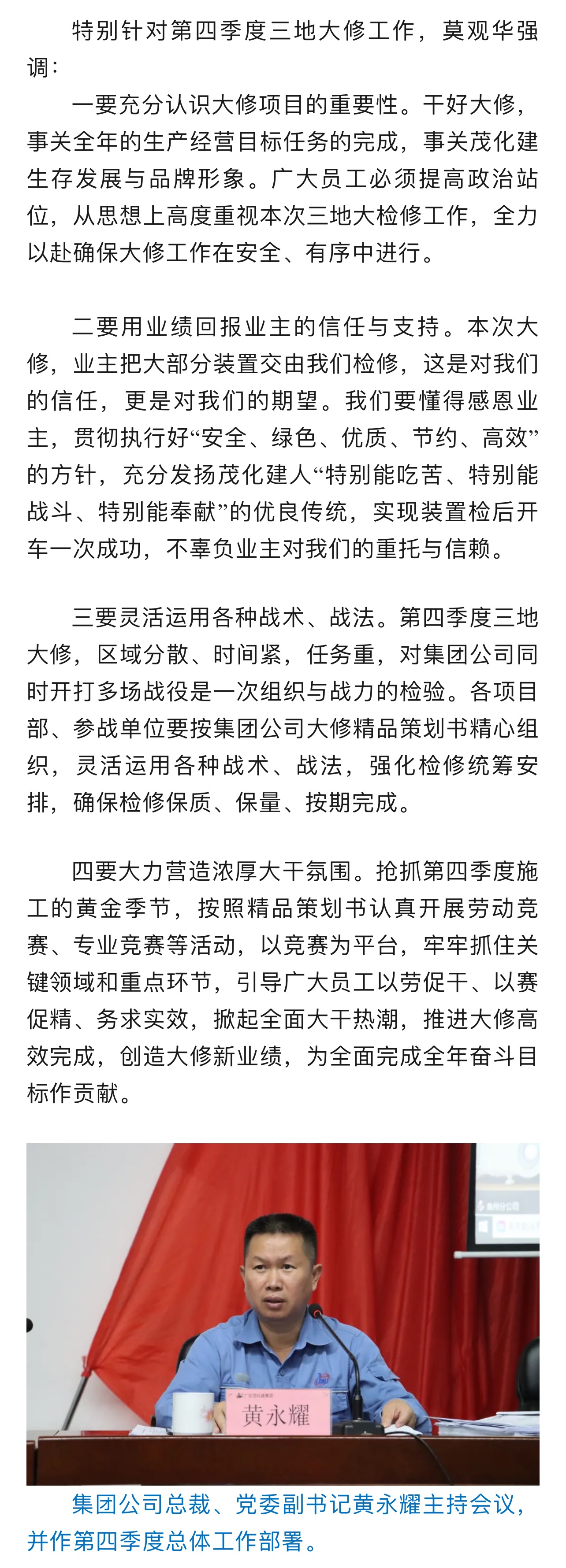 決戰(zhàn)決勝四季度 沖刺全年奮斗目標(biāo)——集團(tuán)公司召開決戰(zhàn)第四季度動員大會